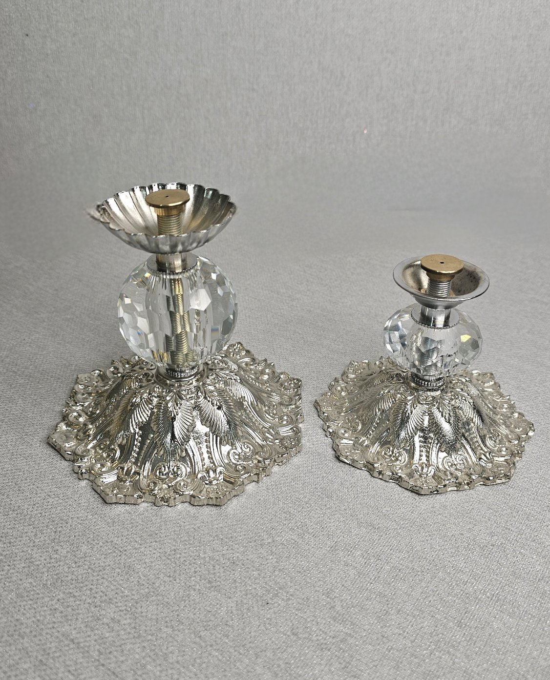 پایه مدل خوشه ای با آبکاری طلایی و نقره ای ، مناسب برای ظروف پذیرایی، ارتفاع پایه بزرگ : ۱۵ سانت ، ارتفاع پایه متوسط : ۱۱ سانت