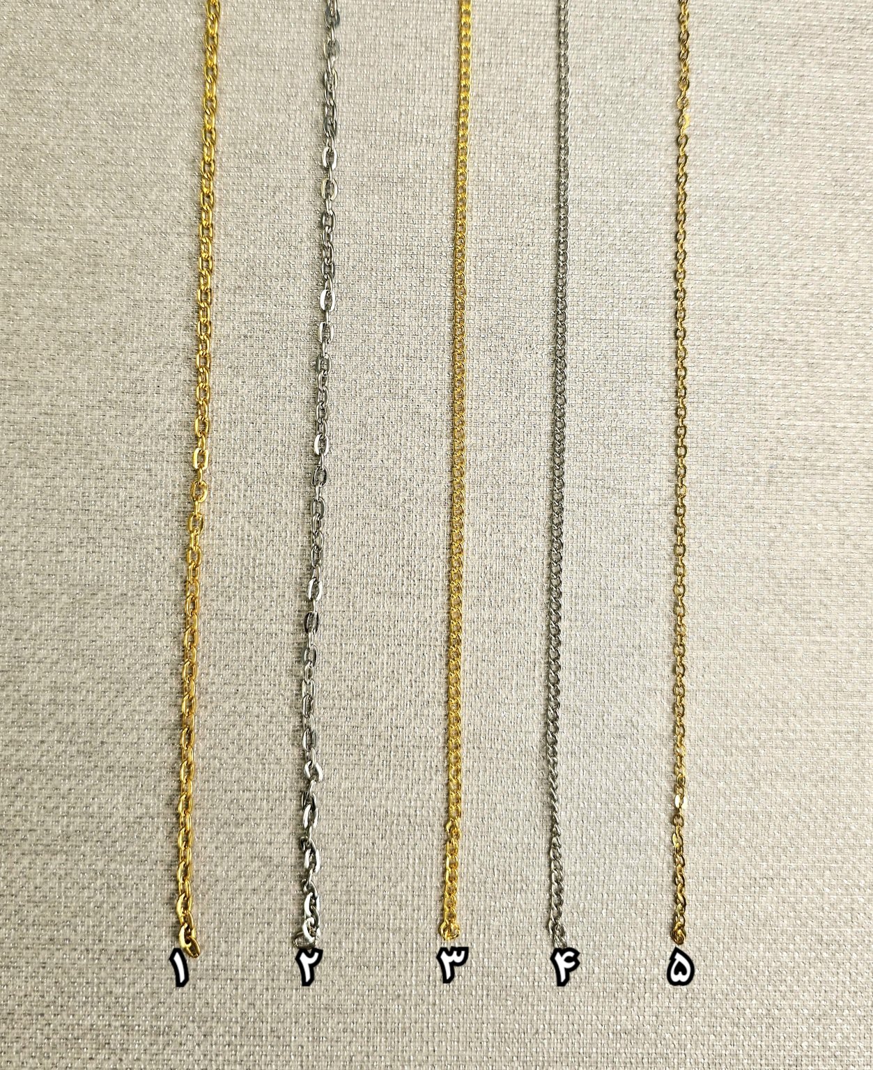زنجیر ها به صورت متری هستن، رنگ ثابت ؛ زنجیر کد ۵ از جنس استیل و رنگ کاملا ثابت